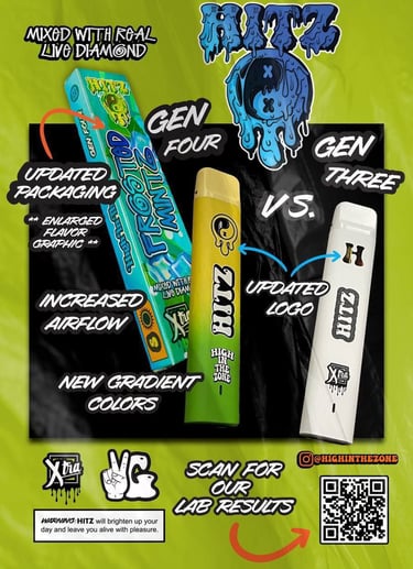 In order to make things clear, here at Hitz Throwaway Vape, we aim for the stars and provide access to a realm where flavors and innovation converge. Find out for yourself why our hitz carts are leading the charge in the vaping revolution by perusing our assortment of disposable vape pens. Thanks to our relentless pursuit of innovation and meticulous attention to detail, High In the Zone has become a household name in the cannabis vaping market. Our latest hardware, the Hitz Gen Seven disposable, is a testament to this. Take Hitz high in the zone to the next level, enjoy the best of nature, and create unforgettable moments with every puff.
